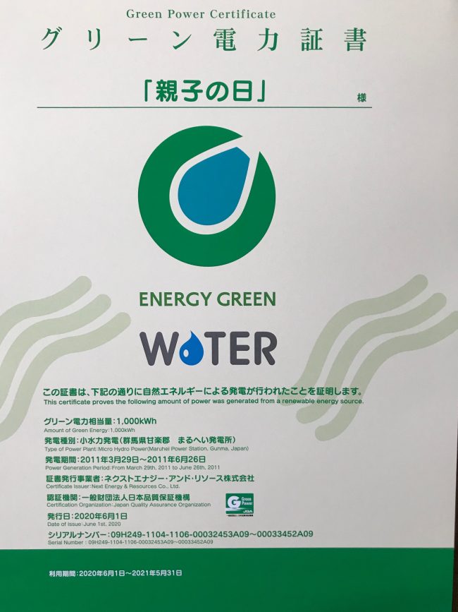 グリーン電力とは、風力、太陽光、バイオマス(生物資源)などの 自然エネルギーにより発電された電力のことです。 地球温暖化をもたらすCo2 (二酸化炭素)排出抑制を目的とした グリーン電力証書システムに、今年も「親子の日」…