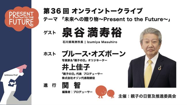 第36回のトークライブでは、2024年1月に発生した能登半島地震により甚大な被害を受けた石川県珠洲市において、復興の先頭に立ち続けている珠洲市長・泉谷 満寿裕(いずみや ますひろ)氏をお迎えします。 泉谷氏は石川県珠洲市…
