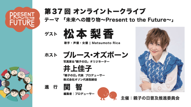 第37回オンライン トーク ライブ 2025年8月28日(木)12時30分からスタート https://oyako.org/talk/ テーマ:「未来への贈り物~Present to the Future~」 ゲスト:松…
