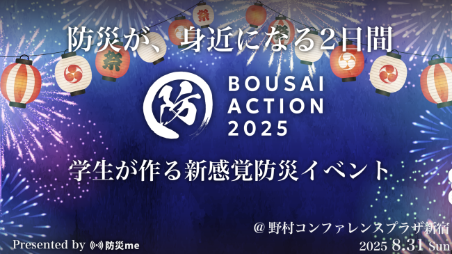 「BOUSAI ACTION 2025」は、学生が企画・運営する新感覚の防災イベントです。 同世代の人たちにも防災と真剣に向き合ってほしい――そんな思いを込めて、福島県発の学生団体「防災me!」が開催します。今回で2回目…