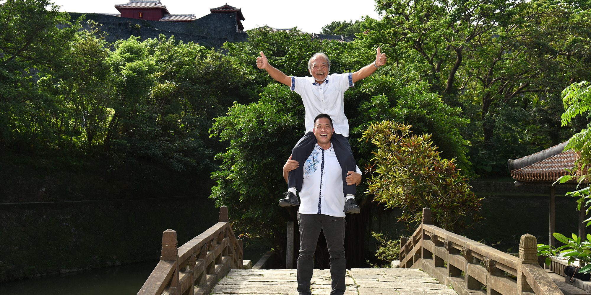 M_数年前にブルースが撮ってくれた、僕が父を肩車しているツーショットの写真を父はものすごく大事にしていますよ。しかも首里城の前! 最高です。
