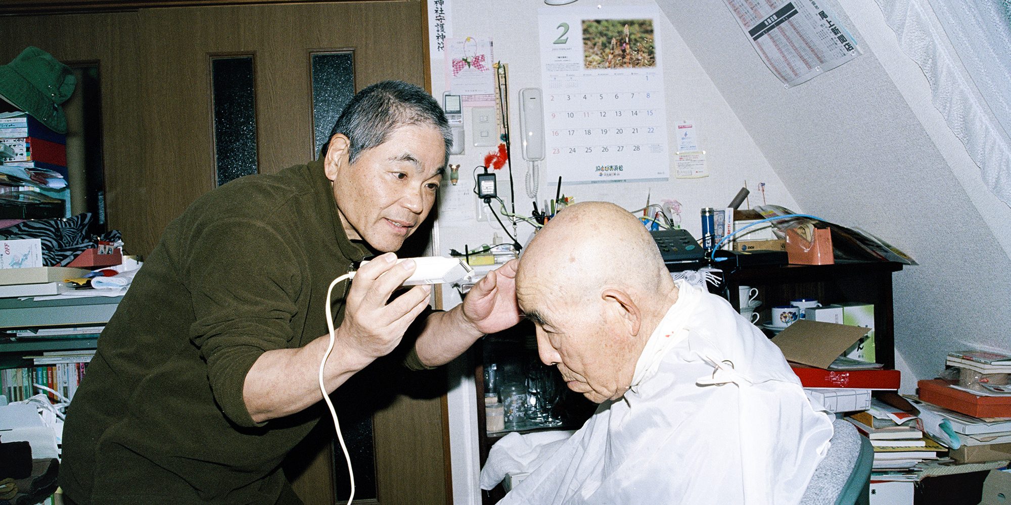 祖父を撮り続けた20年の間に何度か僕の父にバリカンで散髪してもらっている写真がある。撮られた年は様々だが、季節によって庭でやっていたり、台所でやっていたり。この翌年祖父が亡くなるとは、写真を撮っているときには想像も出来なかった。