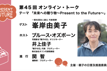古往今来という言葉があります。昔から今に至るまでといったごく当たり前の言葉ですが、今ではほとんどの若者が知りません。われわれは分離の病に憑かれているのです。人類来し方の潮流を、点でしか見れない、時空を超えた視点で世界を観る力を失っているのです。「われわれは、どこからきて、いまどこに行こうとしているのか」。この命題は、人、集団、組織、社会、国家、延いては自然を含めた生命すべてに、いつも付きまといます。ブルースさんと佳子さんの仲間は、この命題の重要性を「親子」という、最も基本的なところで人びとに提示してくれています。「親子の日」という企画は、「親子」から「親子孫」という形でさらなる発展を遂げる可能性を秘めています。日本語は、「親子」という言葉をもっています。ブルースの仲間は、いつかこのすばらしい日本語を発酵させてくれるでしょう。