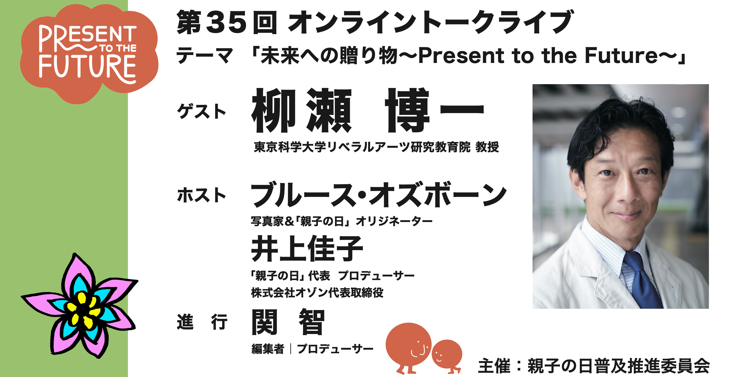 古往今来という言葉があります。昔から今に至るまでといったごく当たり前の言葉ですが、今ではほとんどの若者が知りません。われわれは分離の病に憑かれているのです。人類来し方の潮流を、点でしか見れない、時空を超えた視点で世界を観る力を失っているのです。「われわれは、どこからきて、いまどこに行こうとしているのか」。この命題は、人、集団、組織、社会、国家、延いては自然を含めた生命すべてに、いつも付きまといます。ブルースさんと佳子さんの仲間は、この命題の重要性を「親子」という、最も基本的なところで人びとに提示してくれています。「親子の日」という企画は、「親子」から「親子孫」という形でさらなる発展を遂げる可能性を秘めています。日本語は、「親子」という言葉をもっています。ブルースの仲間は、いつかこのすばらしい日本語を発酵させてくれるでしょう。