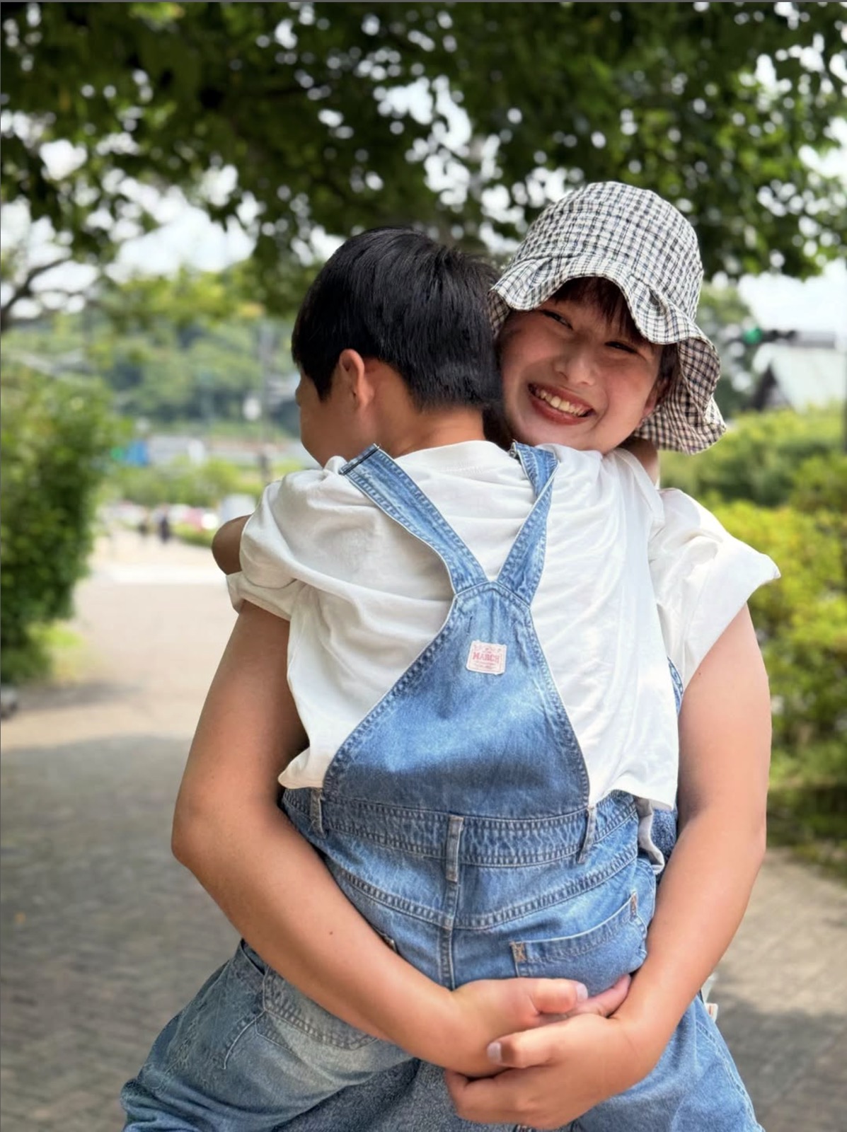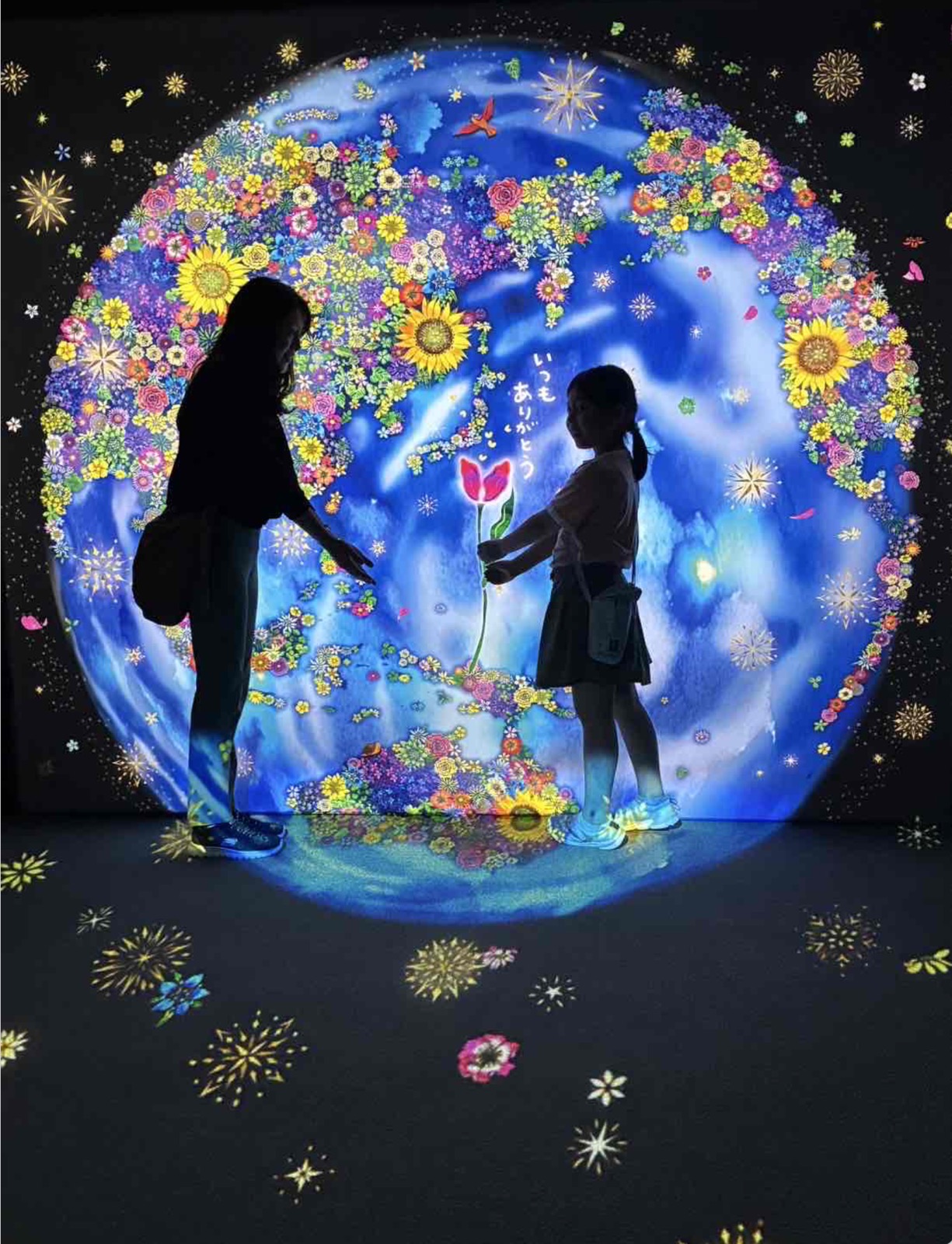 光の切り絵展にて、「一緒に花を持つポーズで撮ろうか」と娘を誘ったら、「私がお母さんにお花をあげたい」と言われ、このような写真になりました。いつも私を助けてくれる娘。